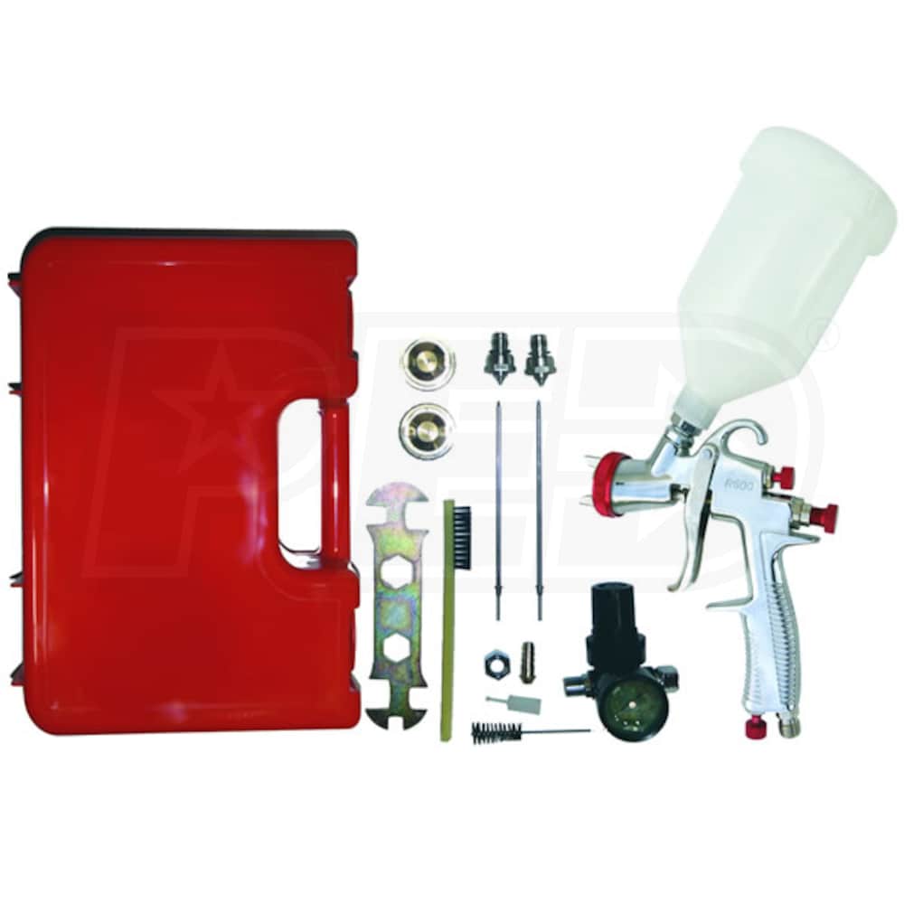 The Sprayit SP-33000K LVLP Gravity Feed Paint Spray Gun Kit with Regulator is a fantastic solution for anyone looking for a reliable, easy-to-use paint gun. This kit comes with two spray guns, two regulators, and a hopper gun for larger jobs. It also includes a cleaning brush, air hose, and other accessories for added convenience.