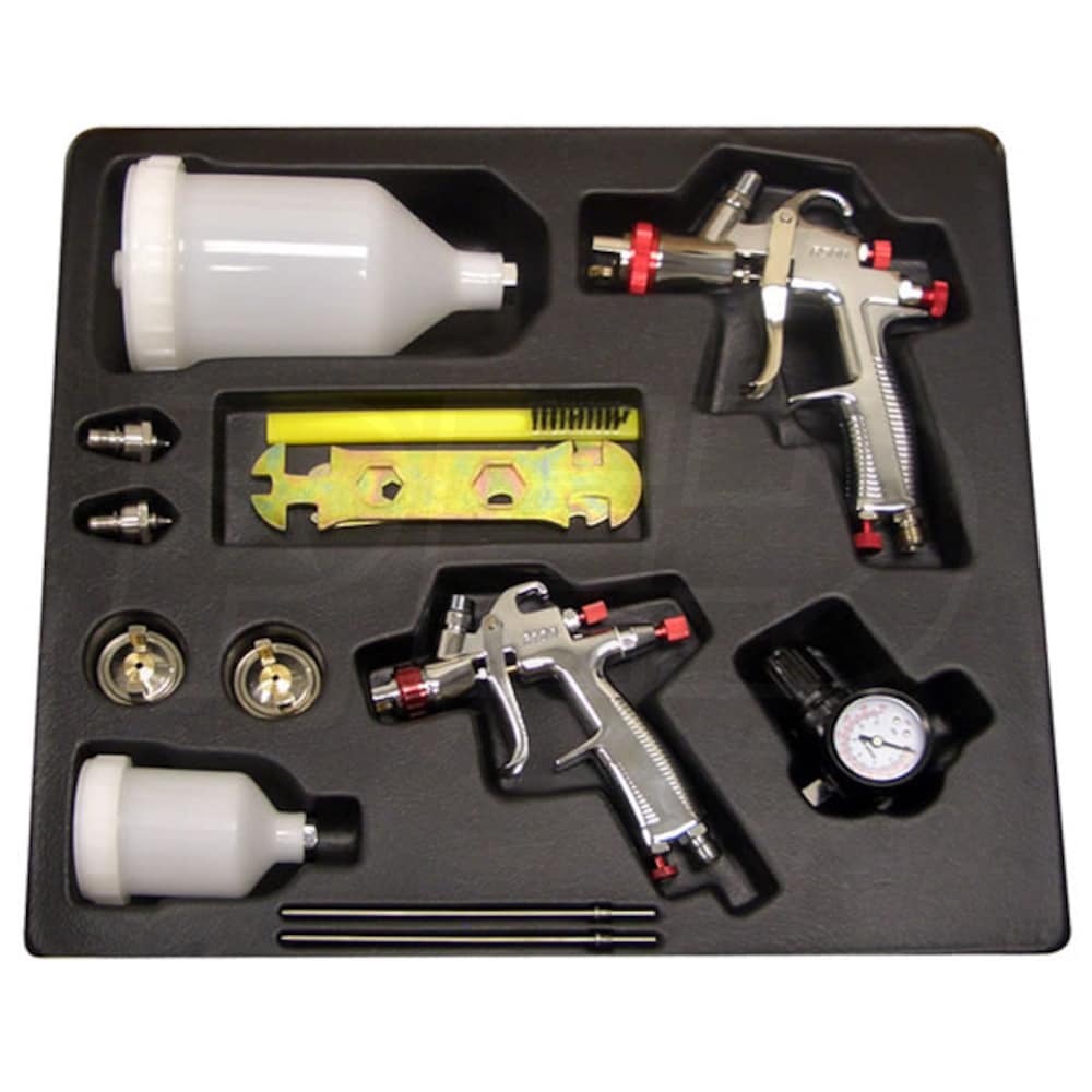 The SPRAYIT SP-33500K LVLP Gravity Feed Paint Spray Gun Kit is a great choice for any DIY painter. The two guns and the regulator give you the flexibility to tackle any painting project. The gravity feed guns are easy to use, and the adjustable pressure and flow settings allow you to get a professional finish. The guns can be used to spray a variety of paints, including lacquers, enamels, urethanes and more.