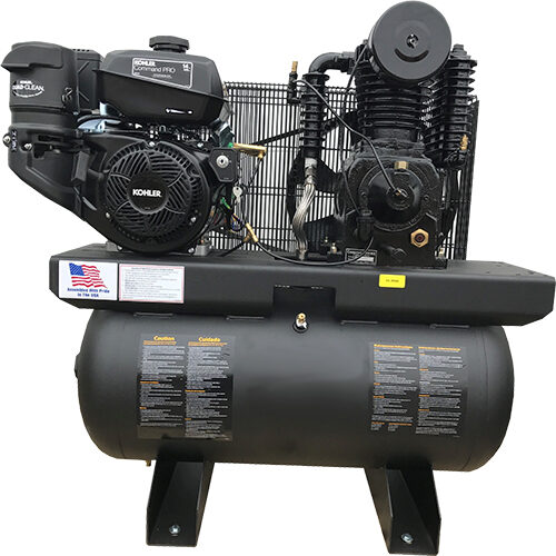 These air compressors are powered by diesel engines and are often equipped with a large tank of pressurized air. The tank is usually connected to the truck and is used to store pressurized air until it is needed.