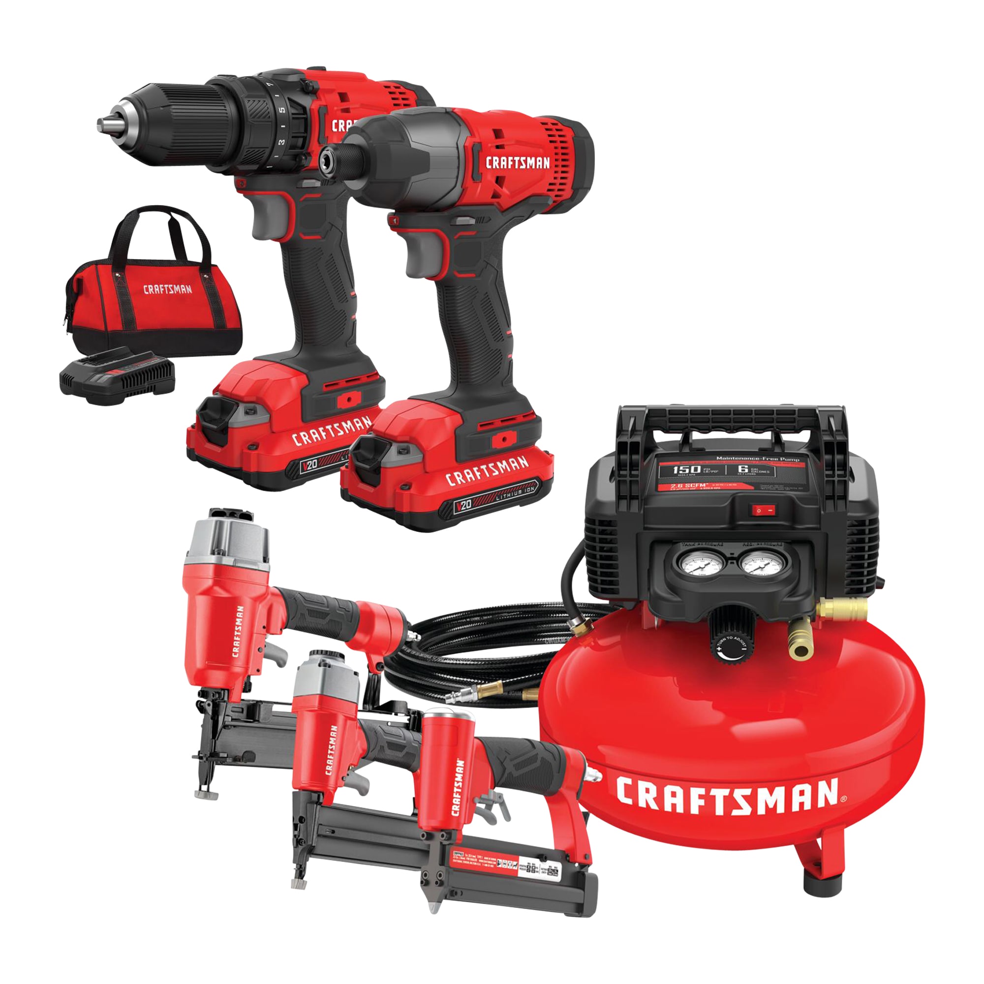 An air compressor tool combo kit is a collection of tools, accessories, and hoses that are designed to be used in combination with an air compressor. The kit includes a variety of air tools, such as impact wrenches, ratchets, air hammers, air nailers, air drills, and air grinders. It also includes hoses, fittings, and other accessories that are needed to operate the air tools.